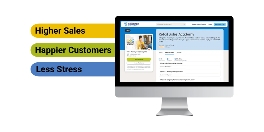 Turn every employee into a top seller with the Retail Sales Academy! Retailers report 10–30% lifts in average sale.